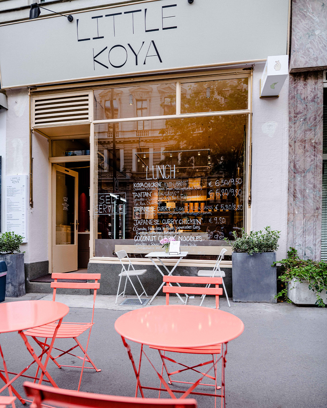 Bei Little Koya bestellen Sie am kleinen Fenster beim Koch und genießen frisch zubereitete asiatische Spezialitäten in einer entspannten Atmosphäre – perfekt für den kurzen Genuss vor Ort.